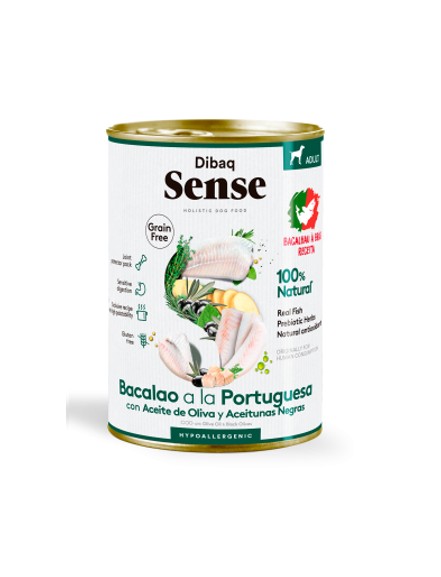 Bacalao fresco 42%*, pescado blanco fresco 39%*, patata 10%, aceite de oliva 1%*, aceitunas negras frescas 1%*, aceite de salmón 1% (fuente de ácidos grasos omega 3 y 6), pack protector articular 0,5% (condroitina sulfato, glucosamina clorhidrato y MSM), sustancias minerales, plantas aromáticas con propiedades antioxidantes naturales 0,02% (romero 0,01%*, tomillo 0,005%* y orégano 0,005%*). *Ingredientes naturales.