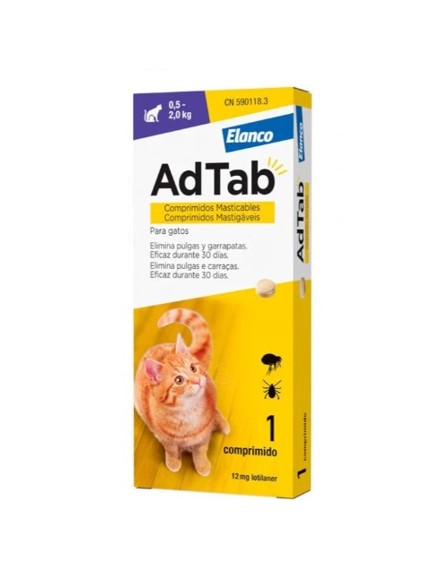 - Comprimido masticable antiparasitario para gatos de entre 0.5Kg y 2Kg de peso.