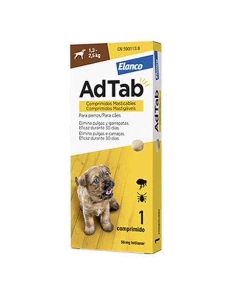 - Comprimido masticable antiparasitario para perros de entre 1.3Kg y 2.5Kg de peso.