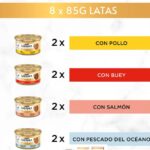 La variedad Delicias Suculentas posee una nueva textura de finos cortes suculentos de proteínas de carnes o pescados cocinados a fuego lento en una deliciosa salsa. Puedes escoger entre los sabores de pollo, buey, salmón y pescado del océano, para ofrecerle variedad a la mascota.