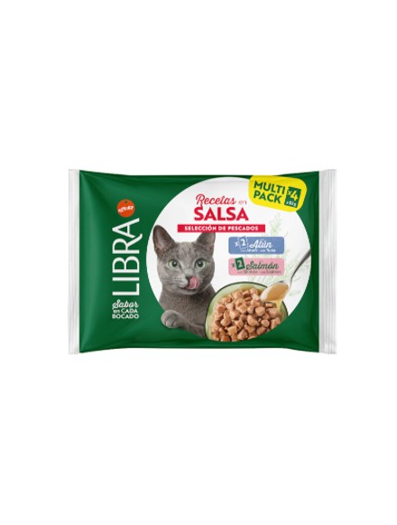 LIBRA CAT BOCADITOS EN SALSA FLOWPACK 2 CON ATÚN Y 2 CON SALMÓN 85g (15 uds./caja)