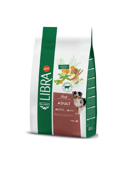 Cereales (maíz entero 4%, trigo integral 4%), carnes y subproductos animales (proteínas deshidratadas de buey 4%), subproductos de origen vegetal, aceites y grasas, verduras (guisantes deshidratados 4%, zanahorias deshidratadas 0,5%, equivalente a un 4% de zanahorias frescas), extractos de proteínas vegetales, sustancias minerales, frutas (manzana deshidratada 0,3%, equivalente a un
