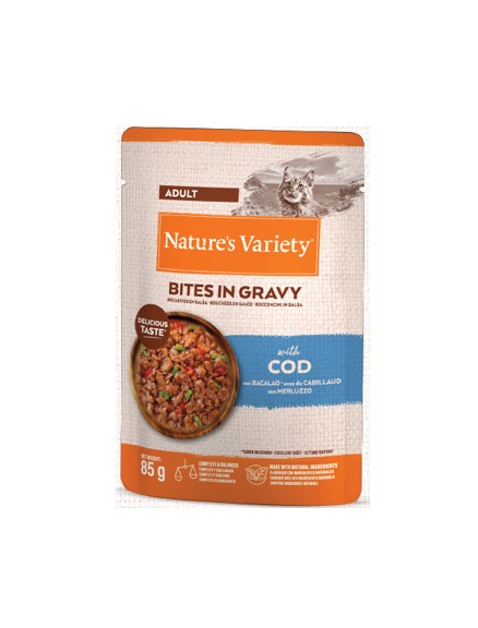 Alimentación Húmeda Nature’s Variety Bocaditos en Salsa FlowPack con bacalao y con pescado océano