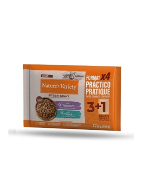 TUNA: Ave* 24%, cerdo* 5%, atún* 4%, almidón de maíz, proteínas de buey y cerdo, sustancias minerales, zanahoria deshidratada* (0,5%, equivalente a un 3,4% de zanahoria fresca), guisantes deshidratados* (0,5%, equivalente a un 1,8% de guisantes frescos), azúcares. *Ingredientes naturales.