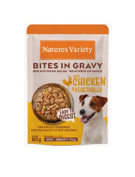 Alimentación Húmeda Nature’s Variety Bocaditos en Salsa con pollo para perros mini