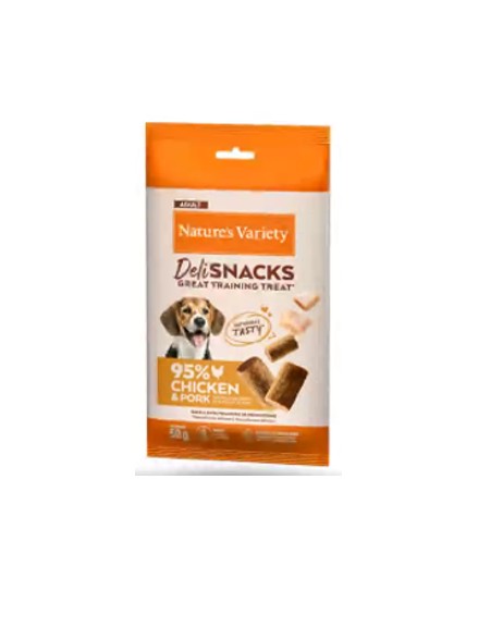 - Hecho con un 95% de carne (50% pollo y 45% cerdo)