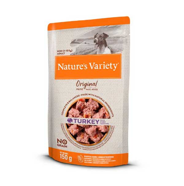 Pavo* (66%), caldo de pavo (28,9%), tomate* (2%), zanahorias* (2%), sustancias minerales, aceite de salmón., *Ingredientes naturales