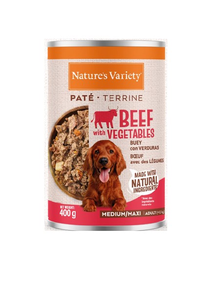Alimentación Húmeda Nature’s Variety en Lata con sabor a buey para perros medium/maxi