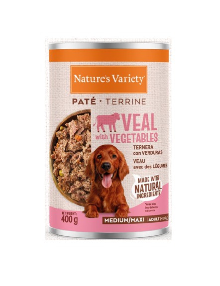NATURE’S VARIETY DOG PATÉ LATA MEDIUM/MAXI ADULT TERNERA 400g (12 uds./caja)