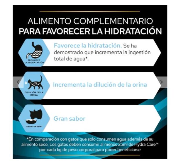 Suplemento para gatos para incrementar la ingesta total de agua, favoreciendo la hidratación y aumentado la dilución de la orina.