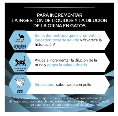 Suplemento para gatos para incrementar la ingesta total de agua, favoreciendo la hidratación y aumentado la dilución de la orina.
